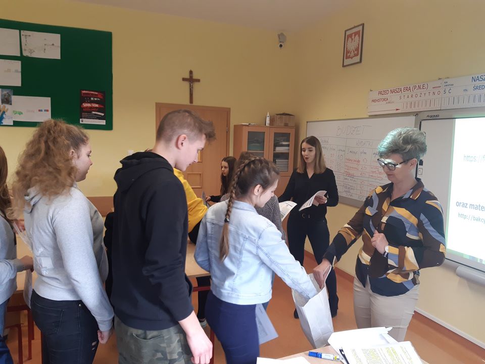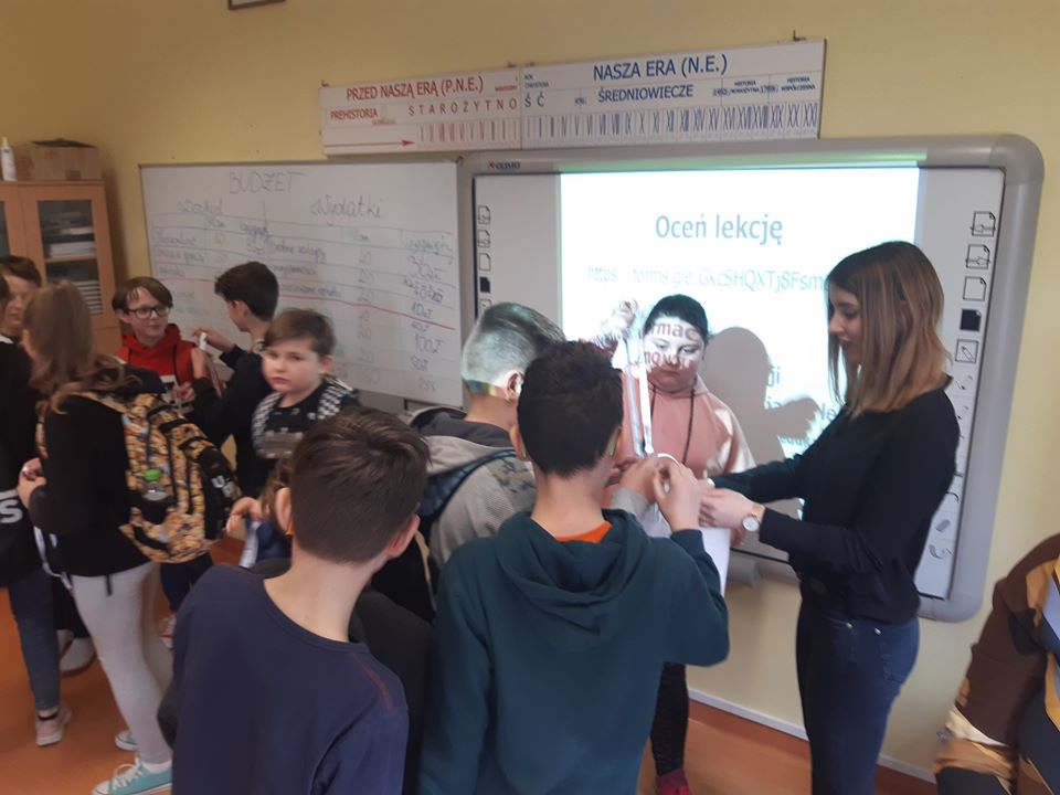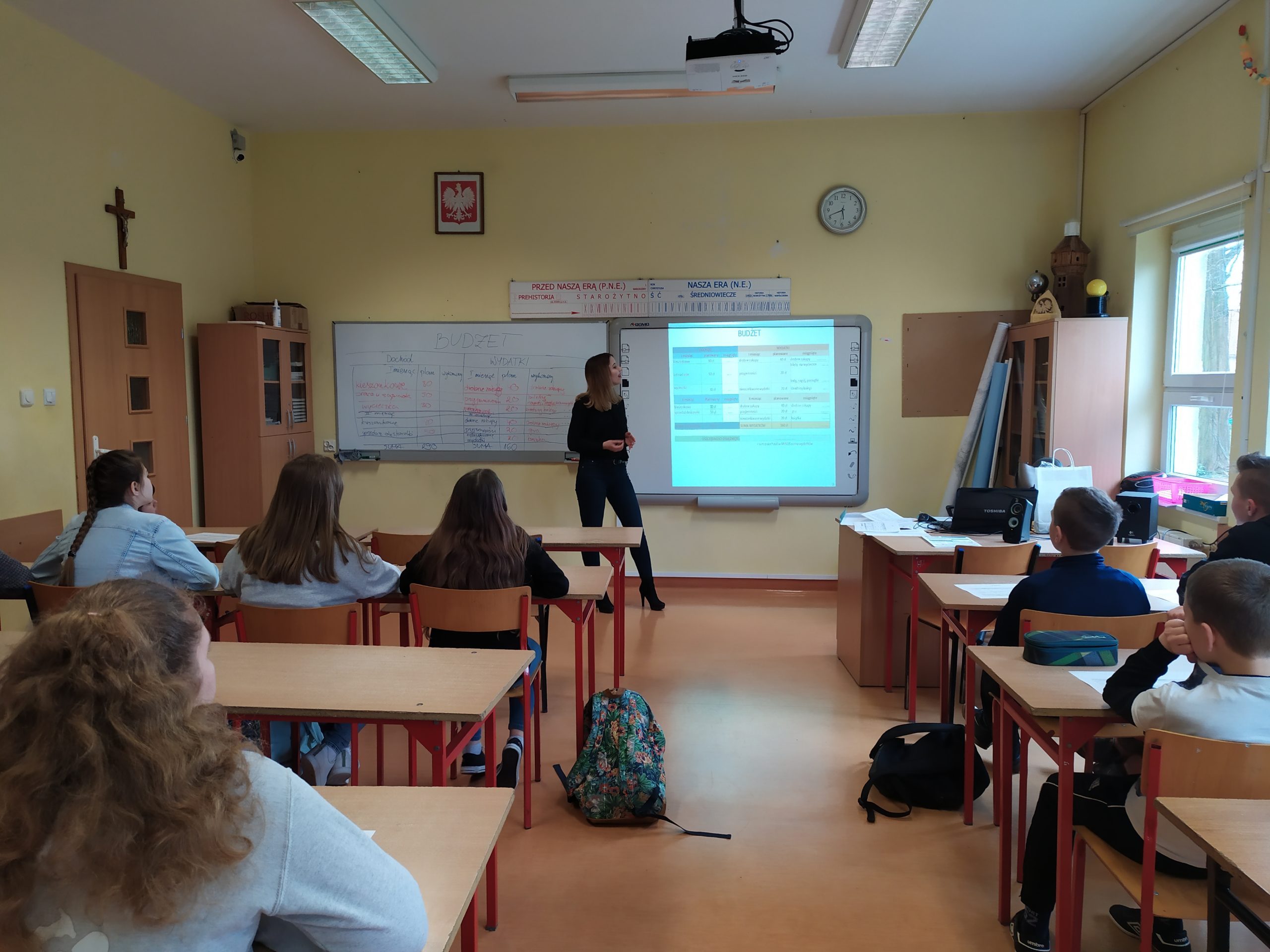 Temat pierwszej lekcji brzmiał „Twoje pieniądze” i dotyczył kwestii kluczowych – znaczenia oszczędzania i planowania własnych finansów. Uczniowie poznali różnorodność sposobów płacenia kiedyś i dziś, w tym na czym polega obrót bezgotówkowy oraz jakie są źródła pochodzenia naszych finansów. Wraz z uczniami klas VI-VIII w odniesieniu do realiów portfela ucznia omawialiśmy, jak organizować finanse osobiste z uwzględnieniem planowanych przychodów (np. kieszonkowego) i wydatków. Podczas ćwiczeń przekonaliśmy się jak wiele niespodziewanych wydatków przynosi życie, a przede wszystkim zrozumieliśmy się jak ważne są oszczędności i ile powinien wynosić fundusz bezpieczeństwa.